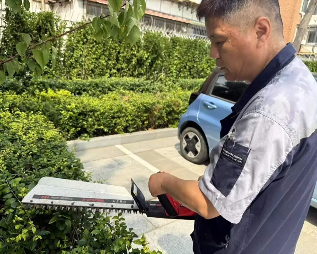 正午的户外广场,绿化师傅们顶着烈日修剪枝叶,阳光把皮肤晒得黝黑,汗珠顺着脊梁骨浸透工装;为让花草熬过酷暑,他们凌晨便扛着水管浇灌苗木,井水的凉意混着汗水渗入泥土。修剪绿篱时,发烫的剪刃硌得手心发红,他们仍专注地修齐每一处边角,让郁郁葱葱的绿植成为高温天里最养眼的“服务风景线”。