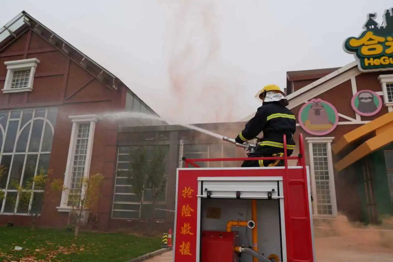 演练环节中,模拟光合谷生态餐厅厨房因电线短路引发火灾场景。按照餐厅巡视人员发现火情、园区义务消防队赶到现场、操作消防设备灭火、抢救伤员物资、疏散被困游客、做好现场安全警戒并引领火警救援等程序进行,各环节参训人员行动迅速、配合密切、处置得当,火情被及时扑灭。整个演练熟练完成灭火器“提、拔、握、压”操作与消防水带铺设,引导游客躬身低姿有序撤离,模拟医务人员急救伤员,达到了“以演促训、以练应战”的预期效果。