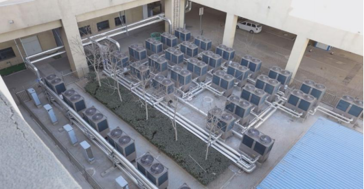 大毕庄车辆段引进空气源热泵技术,利用空气中热量来供暖,这种设备具有节能、环保、高效等特点,相比原有使用燃油锅炉,仅供暖一项,基地每年综合费用节省近1500万,二氧化碳排放减少1.2万吨,极大提高能源利用效率,降低碳排放。