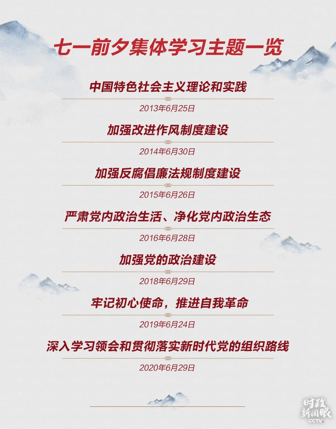 在主持今年这次集体学习时,习近平说,再过两天,是我们党成立99周年的日子。安排这次中央政治局集体学习,既是庆祝党的生日的一次重要活动,也是为了推动全党深化认识并贯彻落实好新时代党的组织路线。