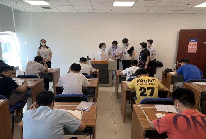 本次城市轨道列车司机职业技能鉴定考试,是我市PPP模式多家运营主体格局下首次统一组织的技能鉴定,涉及运营单位、考试人数全国最多,组织难度全国最大。考试分为理论和实操两部分,6月19日的理论考试中,集团培训中心、市交委职业资格中心、各运营单位80余名工作人员精心组织,严把试卷运输关、考风考纪关、疫情防控关,交通运输部派出专人到5号线梨园头车辆段培训考场巡查,保证了理论考试的顺利完成。