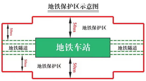 为避免周边工程施工、勘探等外部作业出现侵入轨道交通结构的行为(简称“侵界”行为),影响轨道交通建设及运营安全,因此轨道交通结构安全是保障地铁运营安全的重要前提。为保护城市轨道交通结构的正常使用和安全,确保轨道交通车辆在轨道交通线路上安全运行,在其结构及周边的特定范围内设置的控制和保护区域,称为轨道交通控制保护区,同时在轨道交通结构及紧邻结构的特定范围内设置的特别保护区域。