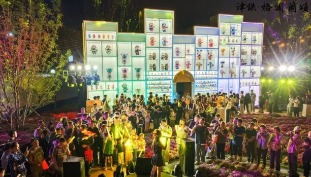 创新文化场景 打造城市文化新地标。为丰富市民精神文化生活,激发城市文化活力,津龙湾TOD文化广场创新引入潮玩文化元素,打造了我市首个户外大型潮玩手办墙,成为新晋城市文化打卡地。该手办墙长约15米、高约8米,整体设计融合法式精装拱门美学风格,既展现了潮玩文化的鲜活张力,又保留了建筑的优雅质感,实现了潮流与经典的和谐统一。手办墙展品涵盖爆款经典手办与市民个人藏品,采用“全民共创”模式,充分调动了大众参与文化建设的积极性。