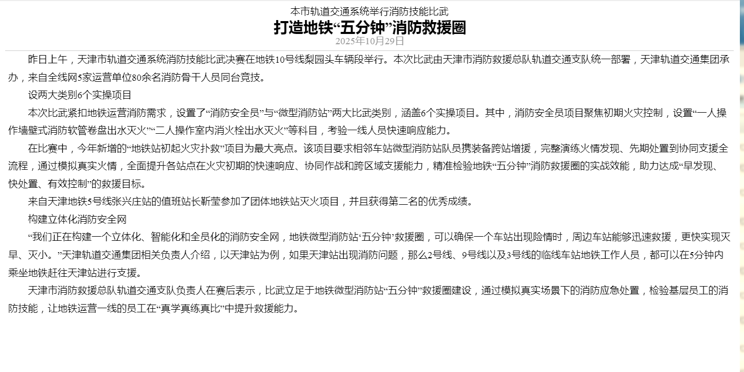 本市轨道交通系统举行消防技能比武打造地铁“五分钟”消防救援圈